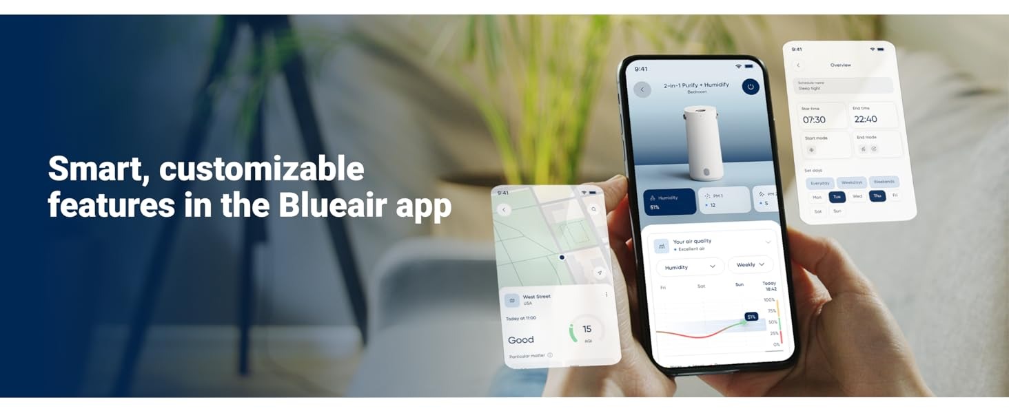 - DUAL ACTION FOR ULTIMATE WELLNESS: Blueair's HEPASilent Technology purifies dirty air. while 360° InvisibleMist Technology humidifies dry air. delivering ultimate aircare with clean. fresh air and balanced humidity—all in one powerful solution.