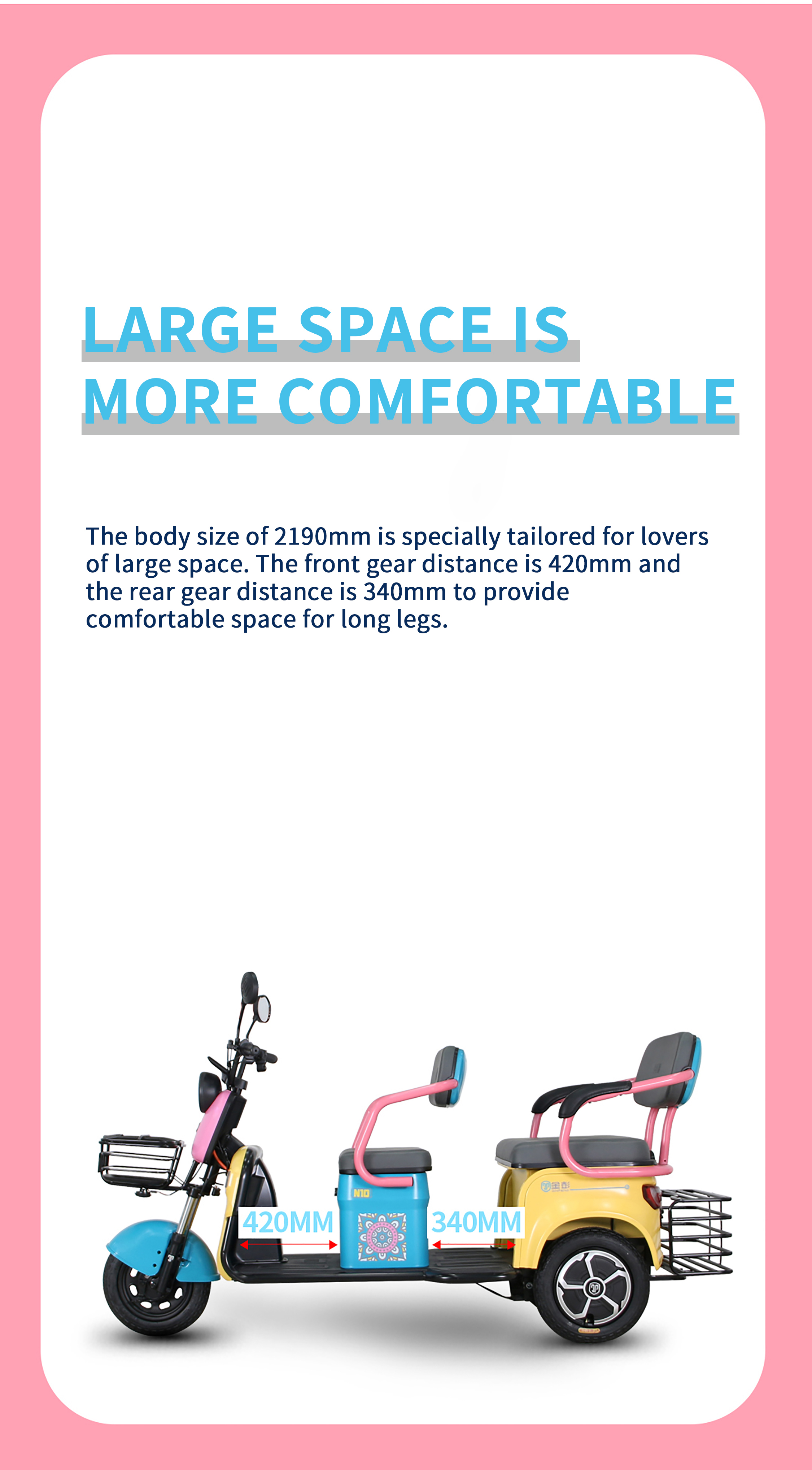 • Fashionable Appearance : The Jinpeng N10 features stylish color schemes and a sleek design. making it stand out among other tricycles and becoming a bright sight on the streets.