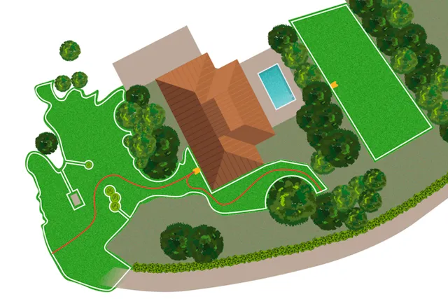 Support by wireA boundary wire can be placed in areas with satellite coverage issues to support the virtual boundaries and prevent mowing interruptions. The mower usually resumes mowing in those areas once it has picked up the signal again but the wire is an option to ensure a smooth mowing experience without temporary interruptions. For example, in narrow passages and areas close to densely clustered trees where coverage can be impacted.