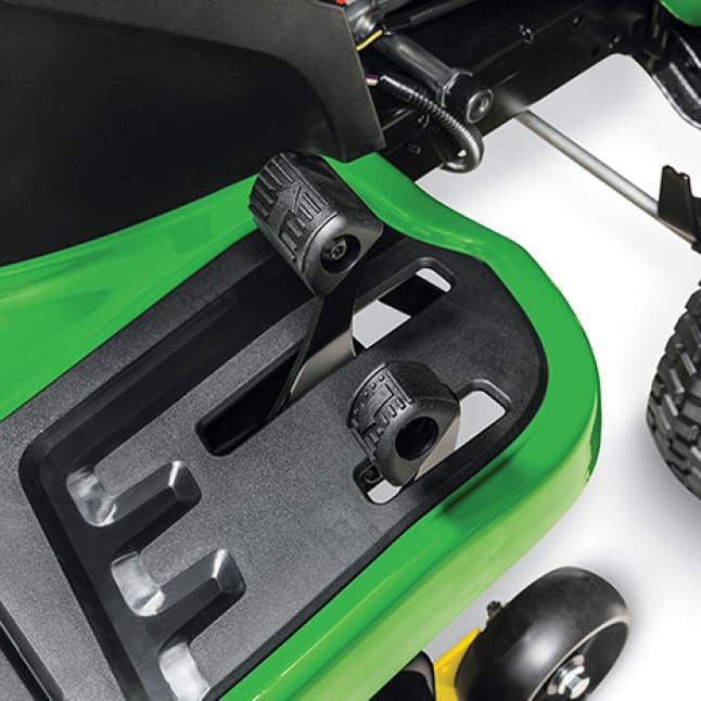 Detail24 HP V-twin John Deere branded engine for stronger performanceJohn Deere Easy Change system - 30 second oil changeNEW - Easy Read Fuel Gauge - easily see the remaining fuel level
