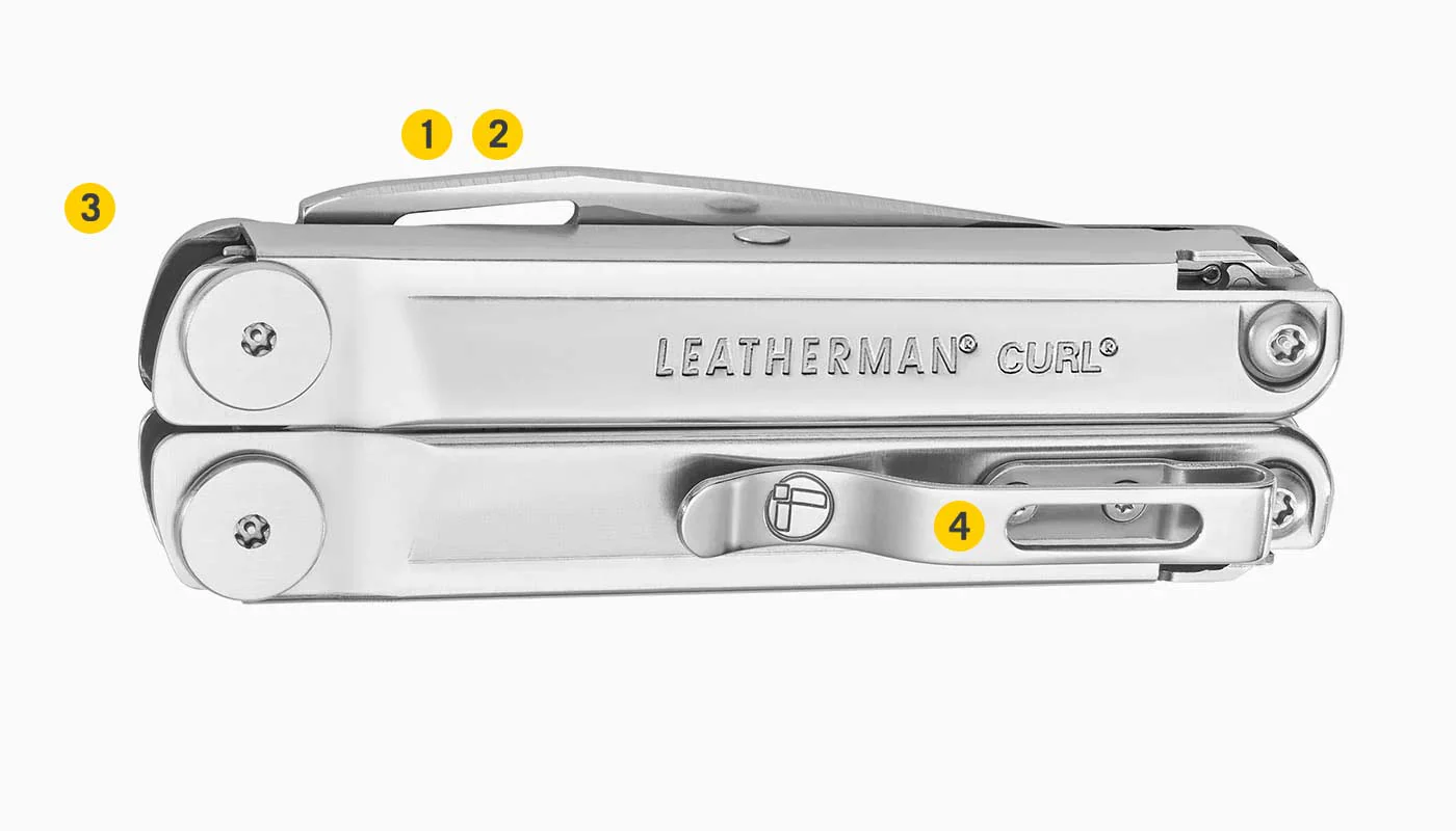 Classic and capable. The Curl is packed with some of Leatherman’s iconic features yet affordable for first-time users. It’s equipped with 15 different tools, including an ultra-sharp knife blade that’s accessible with one hand, spring-loaded scissors, and our customizable bit driver. Carry it wherever the work takes you with the removable pocket clip or a compatible sheath (sold separately). Proudly backed by our 25-year warranty.Specifications