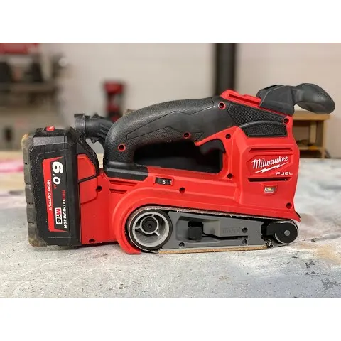 Designed for the professional carpenter. remodeler. and general contractor; the Milwaukee M18 FUEL™ Belt Sander is optimised for maximum power. portability and productivity on the Jobsite. The POWERSTATE™ Brushless Motor and REDLINK PLUS™ intelligence delivers maximum belt speed at 410 SMM with less bog down under load for more aggressive material removal and ensures protection from overload. and overheating. and over-discharge.